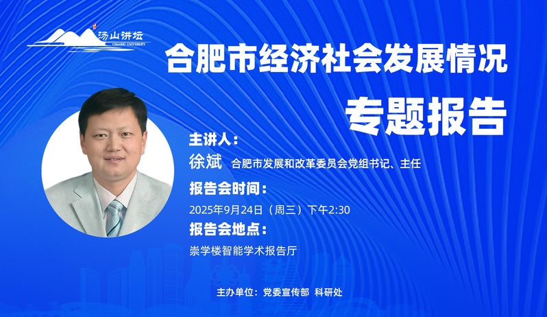 • 9月24日:湯山講壇 合肥市經(jīng)濟(jì)社會(huì)發(fā)展情況專(zhuān)題報(bào)告